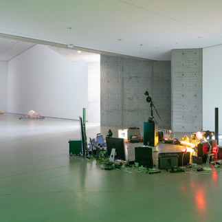 "Troika ist eine Künstler:innengruppe, die 2003 von Eva Rucki (*1976, Deutschland), Conny Freyer (*1976, Deutschland) und Sebastien Noel (*1977, Frankreich) gegründet wurde. Die Künstler:innen leben und arbeiten in London, UK. In ihren Malereien, Skulpturen, Filmen und raumgreifenden Installationen machen sie die Wechselwirkungen zwischen analogen und digitalen Realitäten zum Thema. Im Zentrum ihres Interesses stehen Erfahrungen und Erkenntnisgewinne durch Technologie und auf welche Weisen diese die Beziehung des Menschen zu Natur, Gesellschaft und Realität global transformiert. Ihre kollaborativ angelegte Arbeitsweise basiert meist auf tiefgreifenden wissenschaftlichen Recherchen in den Bereichen der Naturphilosophie und Technikgeschichte" (Text: Max Goelitz Galerie)